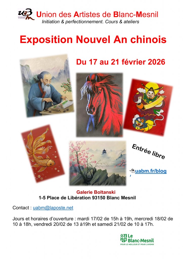 Des artistes de l’UABM vous invite à visiter cette exposition pour laquelle elles et ils ont créé des œuvres aquarelles, dessins, peintures figuratives ou abstraites sur la Chine et le Nouvel An chinois.